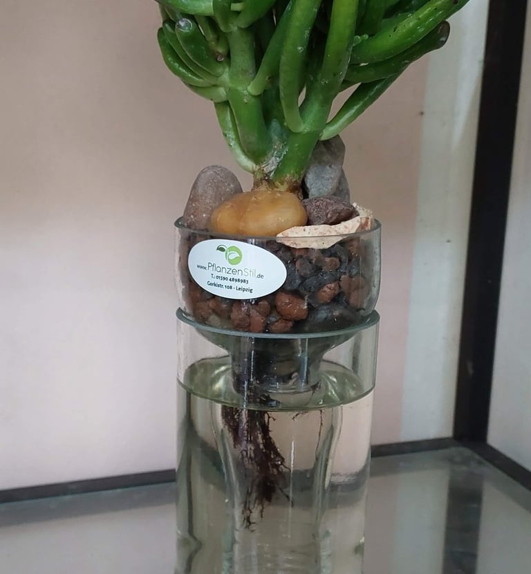 Unsere Gläser werden aus recycelten Glasflaschen in Handarbeit hergestellt und liebevoll bepflanzt. Das Substrat ist immer erdfrei. Für die meisten Hydrogefäße verwenden wir Blähton.